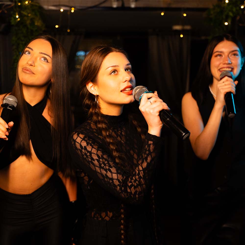 — Кораоке система AST; до 4 микрофонов Shure; звуковая система Yamaha 2 000 Ватт; Возможность исполнения вместе с гостями, ведущим и персоналом.
